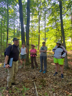 July 14, 2024 - Centred Outdoors visited Dry Hollow the week of July 14 for guided outings. Participants enjoyed a .75-mile hike around the 1,272-acre property with a variety of ecological features led by Jim Julian, Ecological Program Specialist for DCNR’s Bureau of Forestry who works in the Resource Inventory and Monitoring Section. Jim helped lead the effort to map and inventory the vernal pools that occur throughout Dry Hollow, and he has worked in vernal pool ecosystems for over twenty years. On Thursday's outing, Suzy Yetter, staff Ecologist for ClearWater Conservancy, joined the hike and contributed knowledge about the significance of connected lands for wildlife and migration. At ClearWater, Suzy provides technical expertise in developing and implementing conservation strategies through ClearWater’s land and water resources programs and works with landowners, volunteers, local organizations, and other partners to protect and restore healthy ecosystems.